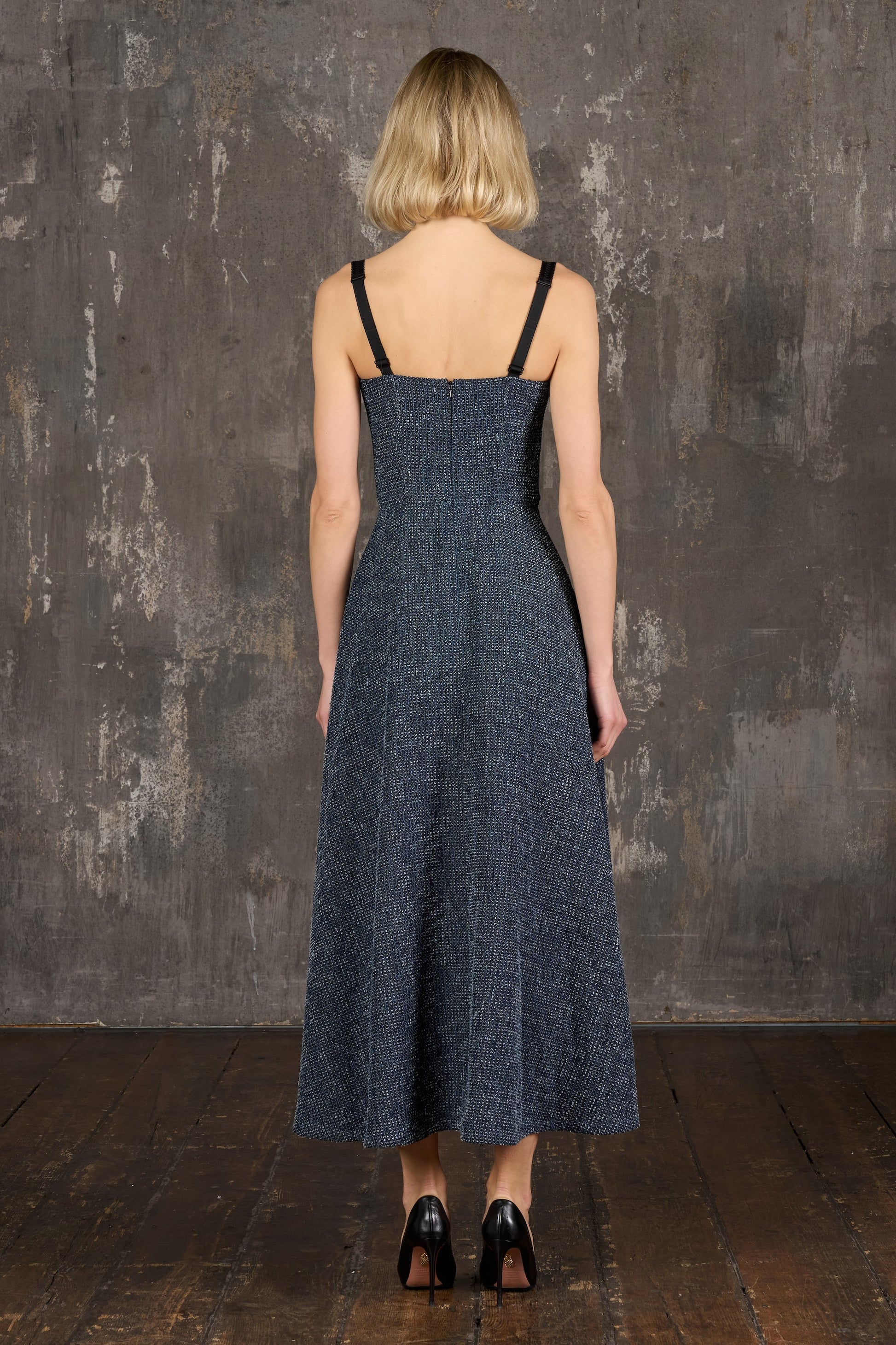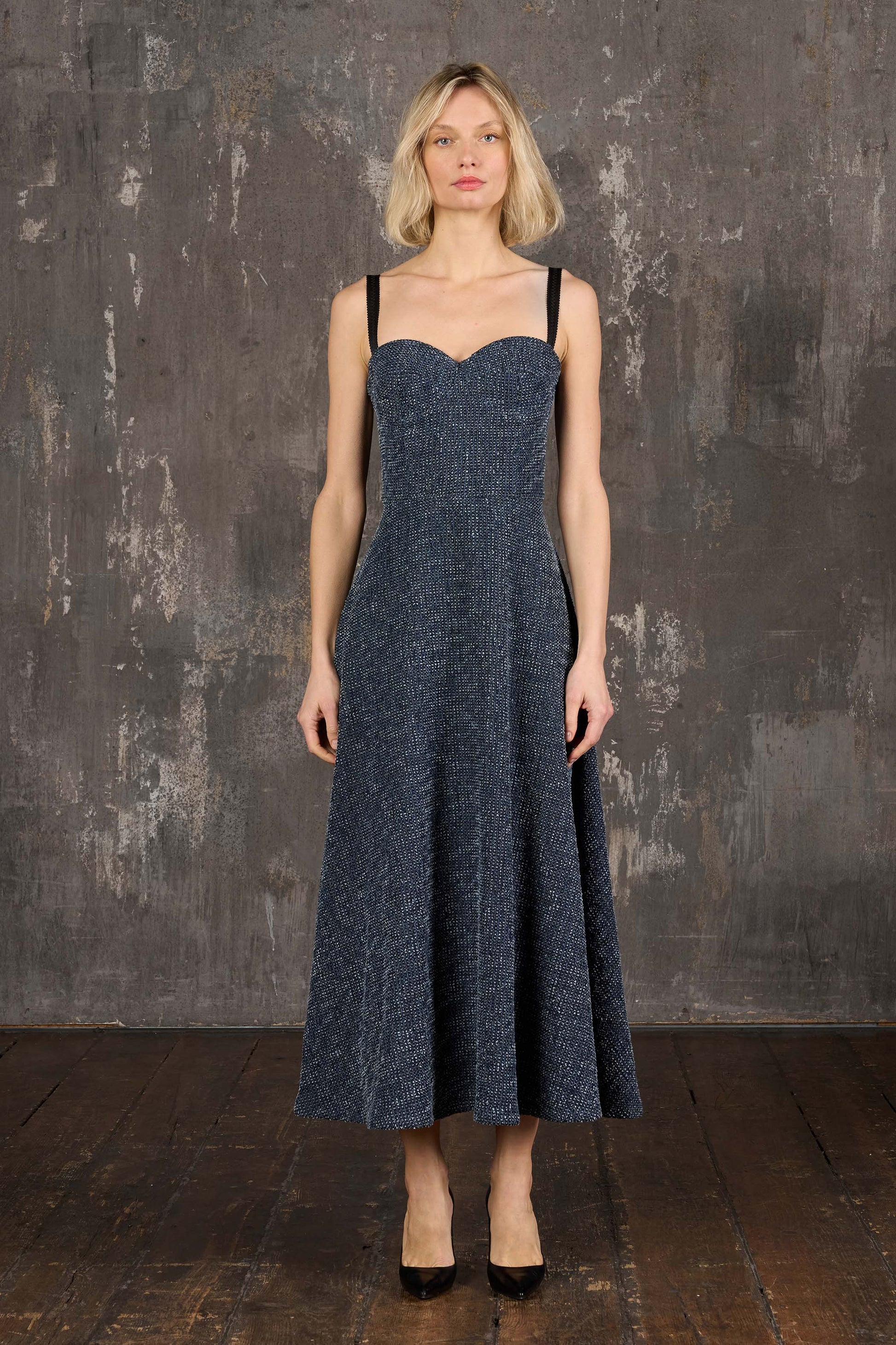 Denim Long Dress, Adjustable Shoulder Straps